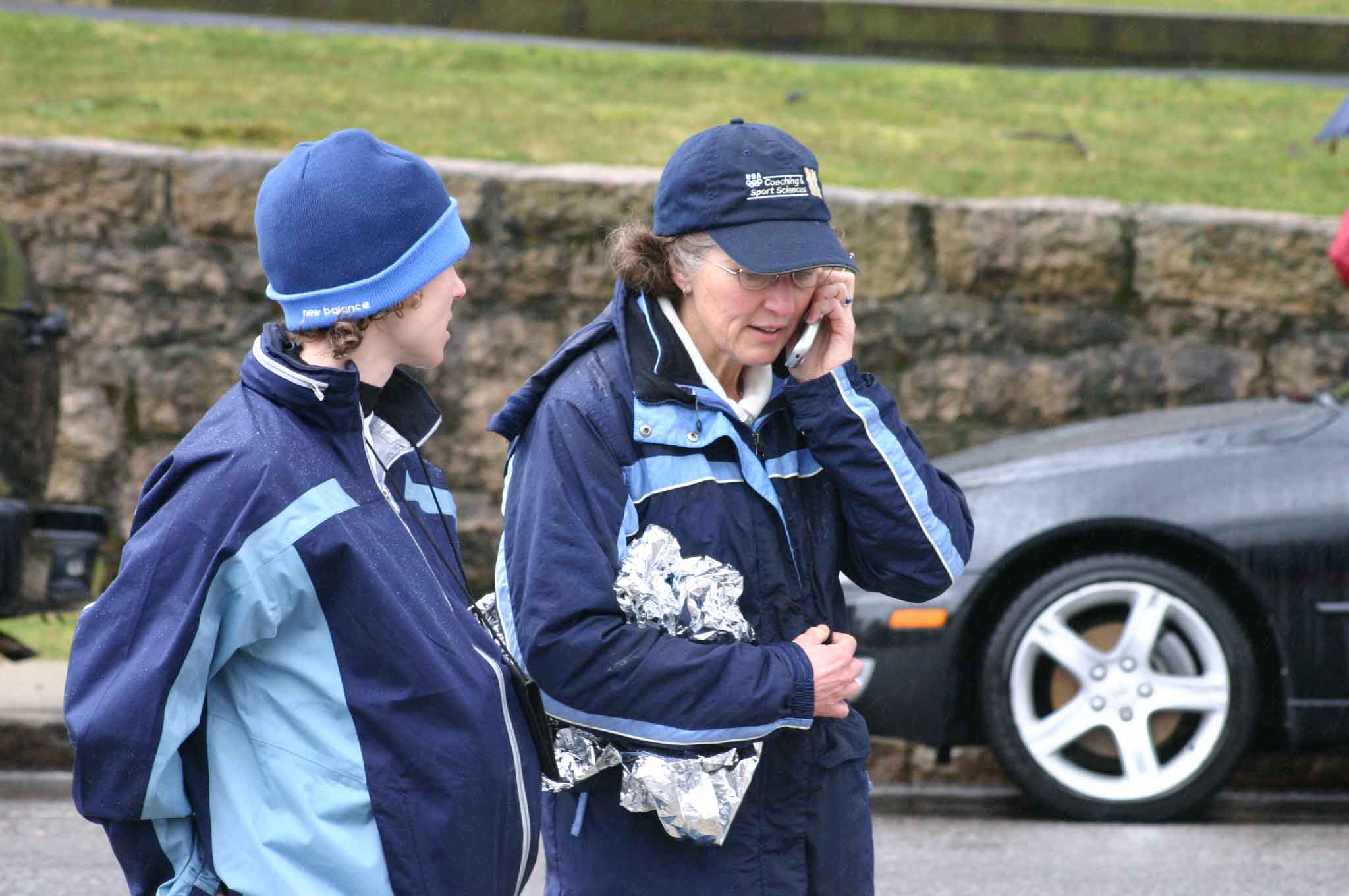 | It has always been my M.O. to pick one spot to watch the race. Usually it is BC, one year the firehouse, once at Fairbanks in Brookline and even once standing at the finish line handing out medals. This year I figured I'd try to hit a few spots by bike (I even bought a new one for the occasion) but the weather dampened my enthusiasm. I ended up joining with Arlene and Emily to do a "car chase" of the leaders. Em mapped out a plan with predicted times that were made a little easier when the race went out slower than usual. We caught them at 10K, 20K, a close miss near the fire station and a make at Cleveland Circle, then hopped on the T to catch the after race festivities. |