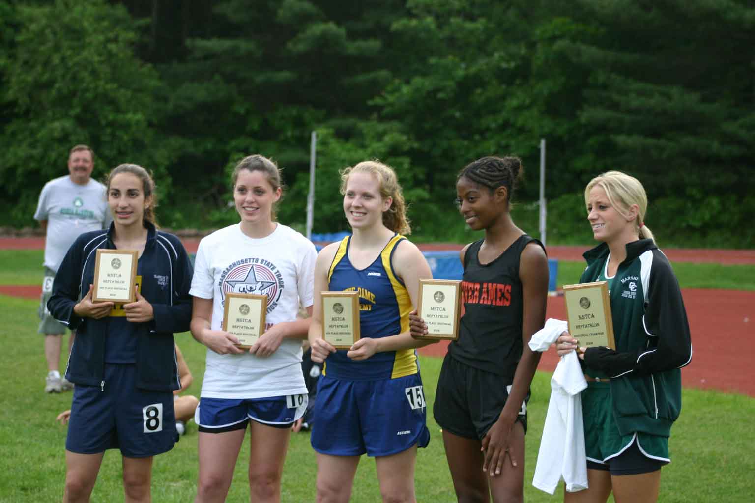 The top 5 from left 2nd - Amira Downes - Harwich - 3,455 5th - Mary McAvoy - Walpole - 3,258 4th - Kristie Hadley - Notre Dame - 3,291 3rd - Katelyn Fortes - Oliver Ames - 3,398 1st - Katelyn Allen - Marshfield - 3,588 |