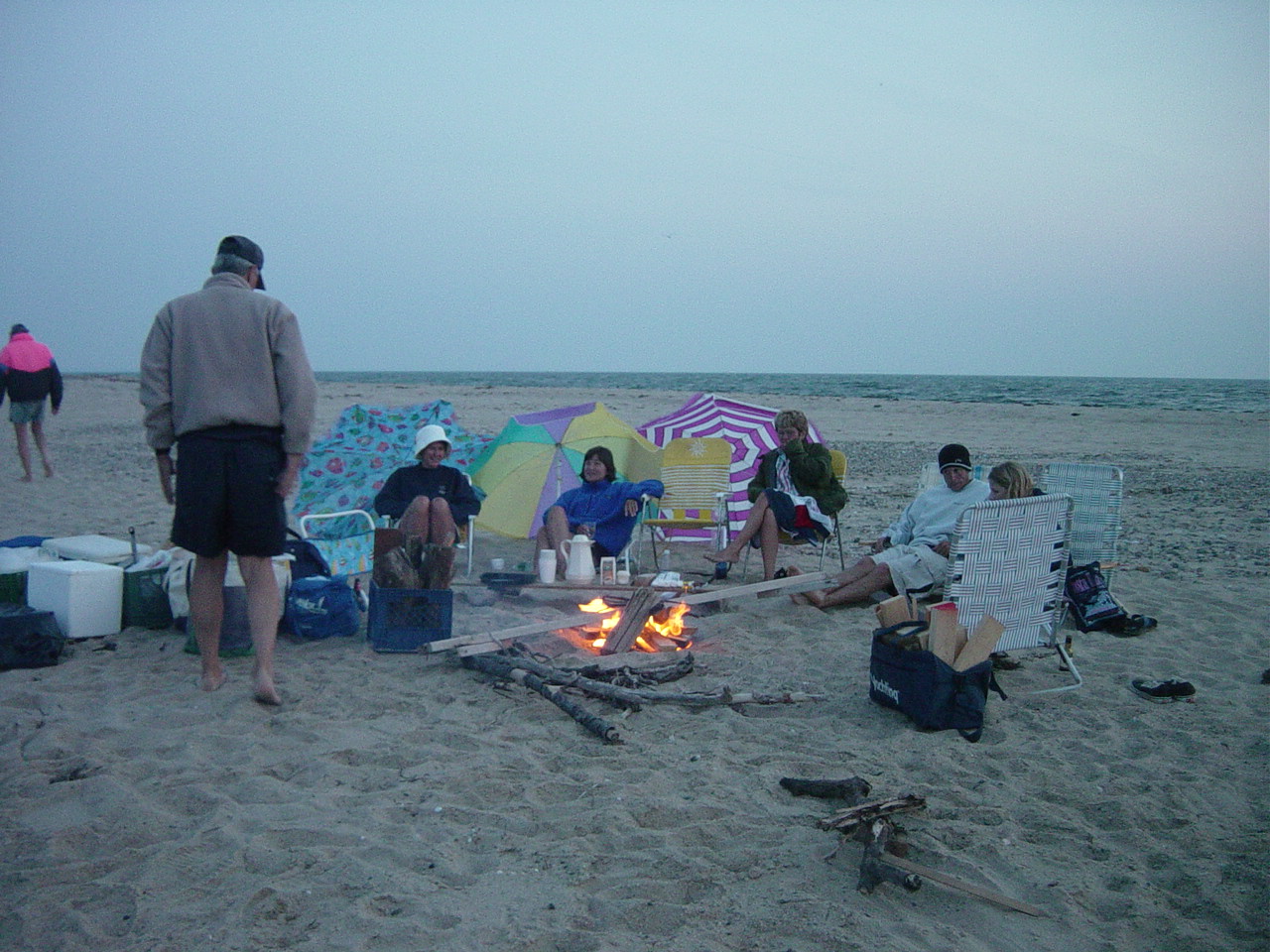 fire helps take off the chill. The umbrellas served as a wind break. |