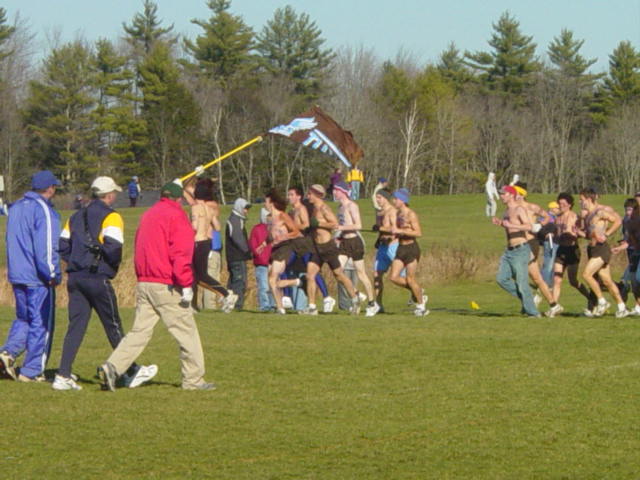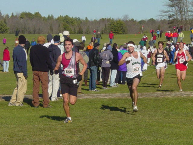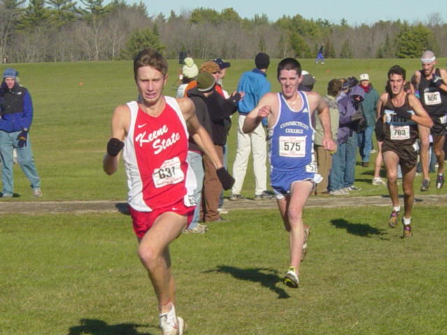 One last look over his shoulder to make sure victory is his. He's closely followed by Tuft's Nathan Bringham, Williams Neal Holtschulte and Keene's David Bridgewater Didn't your coach tell you never to do this? |