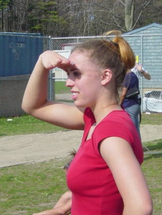 Chace after the 200M - Capt. Kellyn Kearney enjoys watching the long jump |
