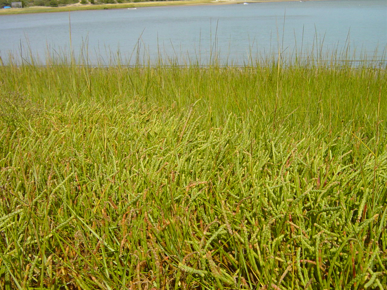 | Beach pickle lines the water. This is probably the largest continuous bed of this salty tasting plant. On the way I also passed three hikers with baskets full of wild mushrooms. |