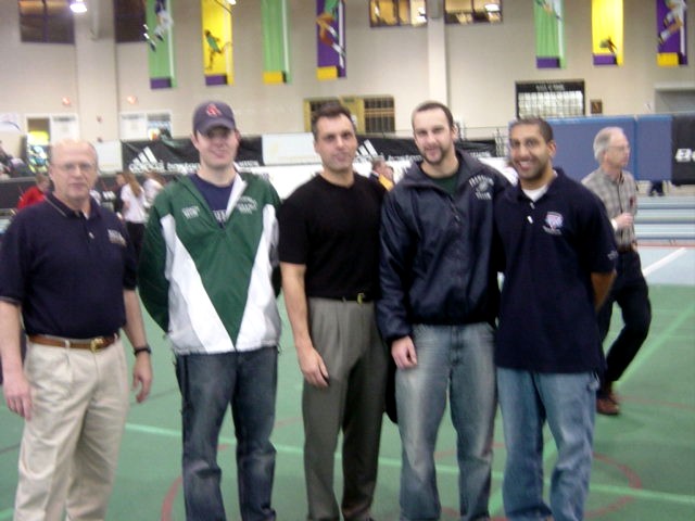 There has been a lot of friendly trash-talking lately between North Attleboro high jump has-beens. PJ Allessi has taken the unofficial lead in the “usetabgood” category, having submitted a jump of 5’10”. Latif “Ambulance Ride” Thomas was more noted for his 400M prowess but his recent 5’7 clearance isn’t bad. Then comes Jerry Espinosa who has “put his ego where his mouth is” and has proven that age is only a number. At the advanced age of 40 he jumped 5’10” in 2003. Then having bulked up for pentathlon this year he still cleared 5’7” to win the 40+ division at Brown University.