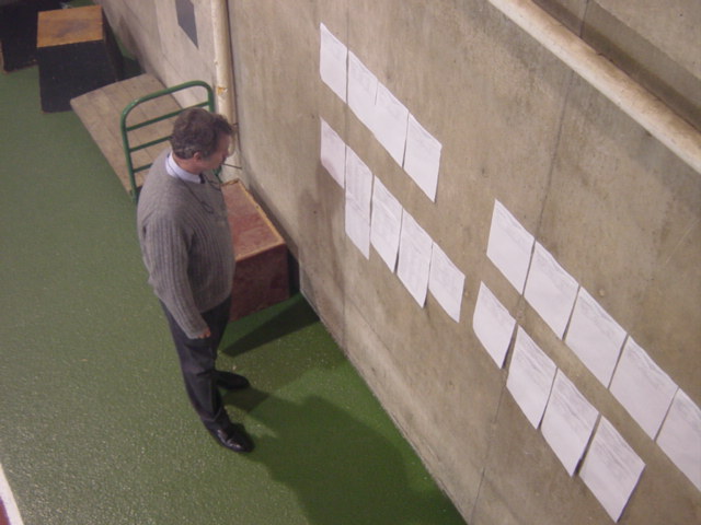| Mark Young checks the score. Though defeating Harvard, Yale lost to Princeton by one point. |