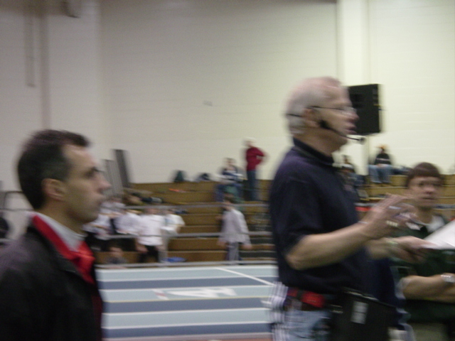 | Saltzman (Meet MVP runner) receives award from Bally's regional director Jerry Espinosa. Ballys Total Fitness sponsored the meet. | ||