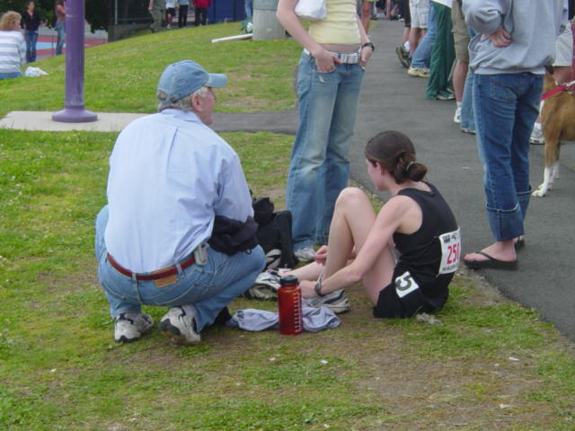 Katy and her dad after the mile in which she placed