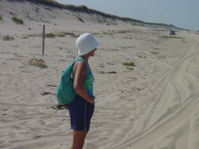 | This was one of the walks that had me most concerned. The distance is at least six miles and judging by the map it is one of the most desolate and unforgiving stretches of beach. There are no major paths available to cut the walk short. The only major trail between the two points is the one that is used by the beach buggy tours, and walking that would be difficult. There are large patches of soft sand and it is a long and winding route. So armed with plenty of snacks and water, Arlene and I forged ahead. |