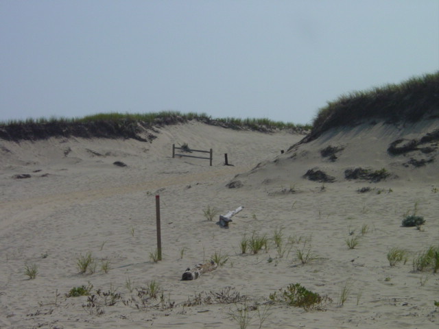 | You can make out an old ORV trail that used to run along the backside of the ocean dunes. It is now closed and is starting to grow in. |