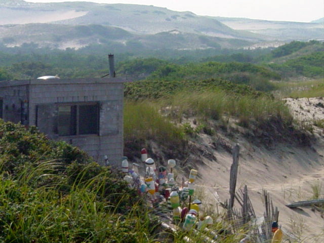 | We came upon this dune shack nestled in the sand. There are many of these scattered over hundreds of acres in the Provincetown dunes. These were once private homes that were famous for their use by artists and writers. After being taken over by the National Seashore they were slated for destruction - the theory being to return this area to its natural state. Because of their historical significance, there was an uproar and a non-profit organization now maintains and manages these shacks. |
