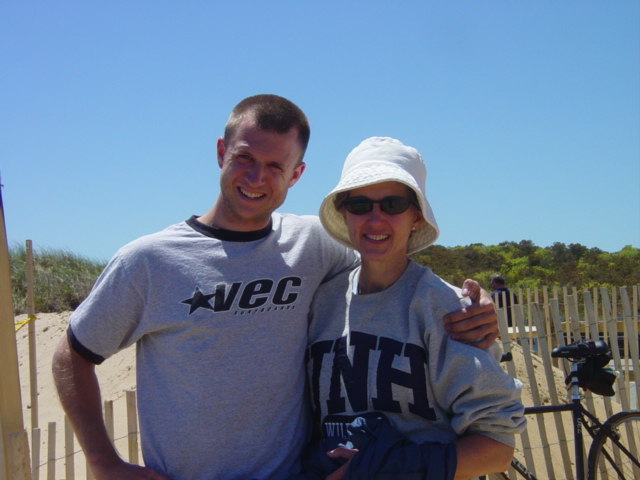 | Ethan sees Arlene off at Newcomb Hollow parking lot. It was our last possible day to get in a beach walk this month. The weather was great except for a strong wind in our face that sometimes pelted us with sand. Toward the end of the walk my eyes would be watering from the constant grit. | ||||