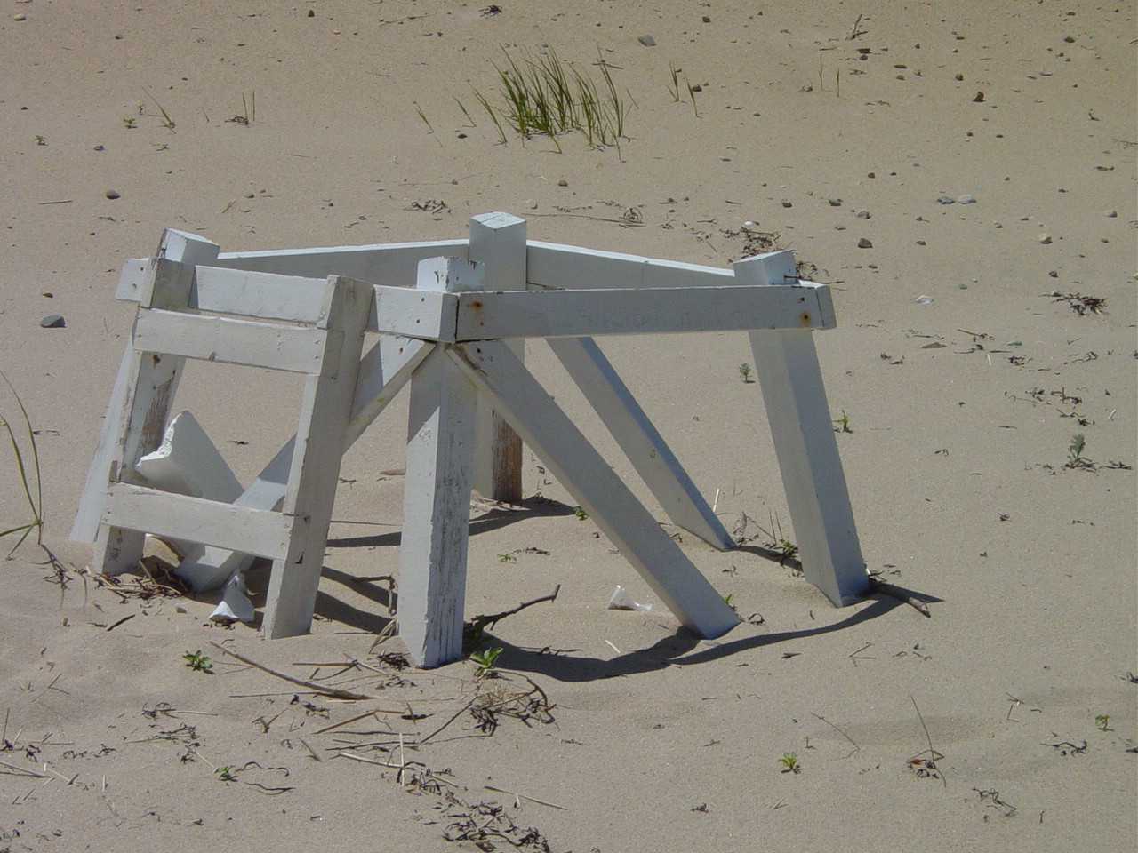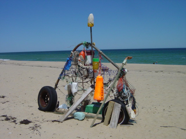 | The remains of this lifeguard chair were seen two miles north of Newcombe - 1.5 miles south of Ballston. With the main current travelling north, chances are this was once a Wellfleet chair. But violent storms could have driven this south from Truro. | ||||