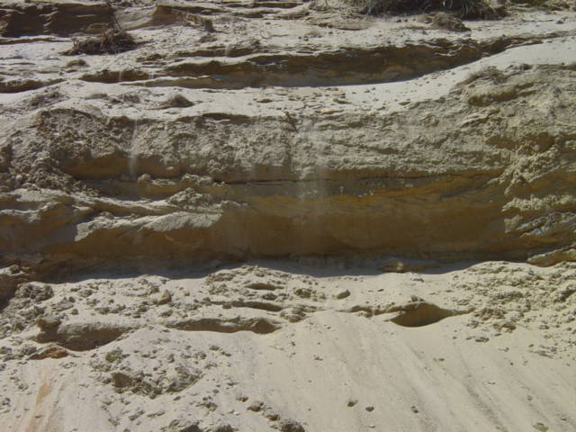 | Here are designs in the dune caused by rain washing clay down the face. | ||||