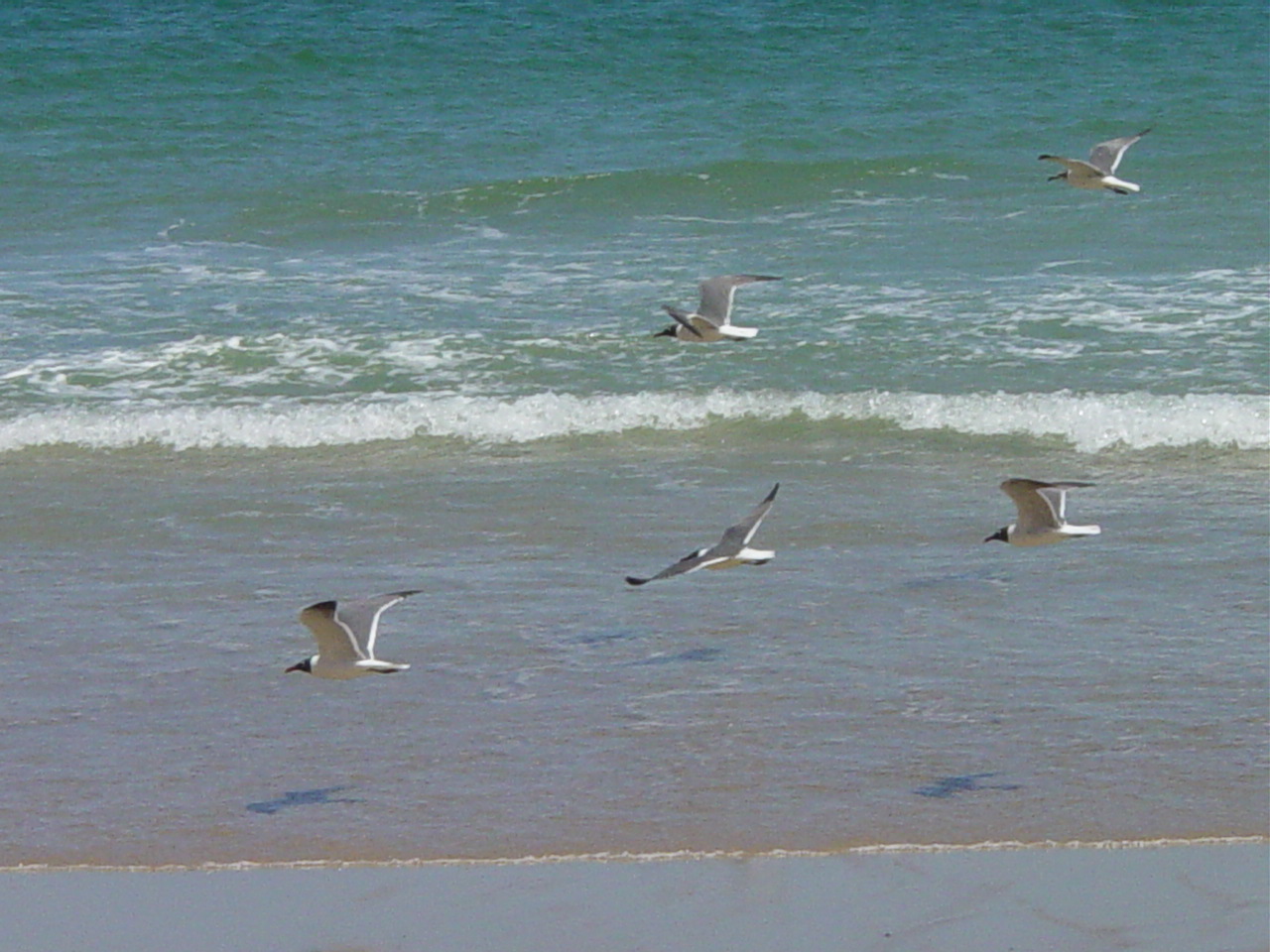 | Shore birds follow the water's edge. They will land further down the beach on exposed sand bars or be seen diving for bait fish - a sign that larger gamefish are nearby. | ||||