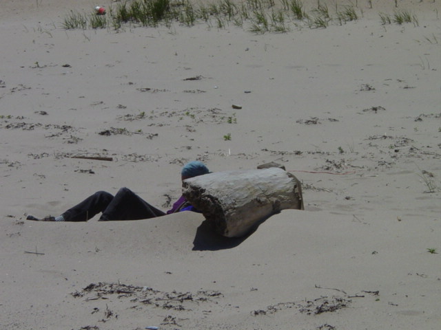 | A solitary soul uses an old log as a wind breack behind which he can quietly read. | ||||