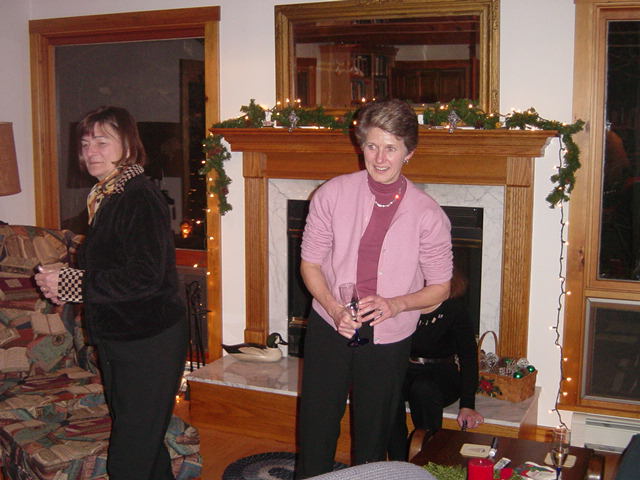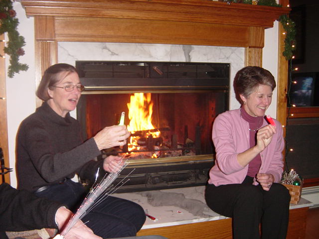 Caroline and Arlene enjoy the fire  |