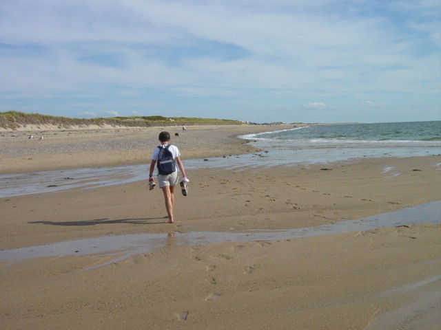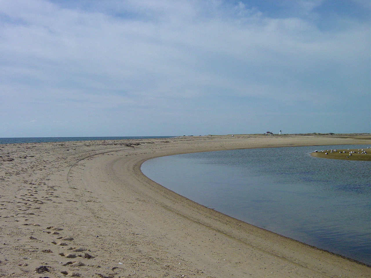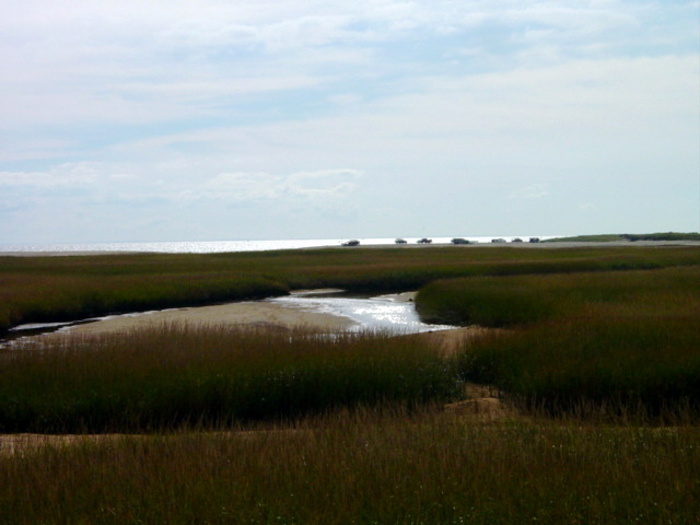 the ocean to the left and the inner trench of Hatch's Harbor to the right,