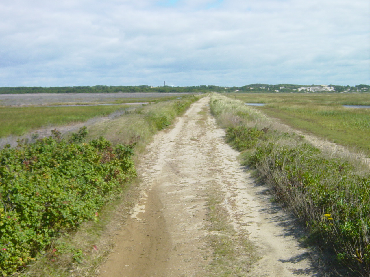 | This is the road over the dike. We chose this path rather than return along the beach (where wind was whipping at 25MPH) or the sand trail from Race Point to the lighthouse. It was a long trip back including wooded paths, road, and bike trail - but we got to see many areas we had never explored. |